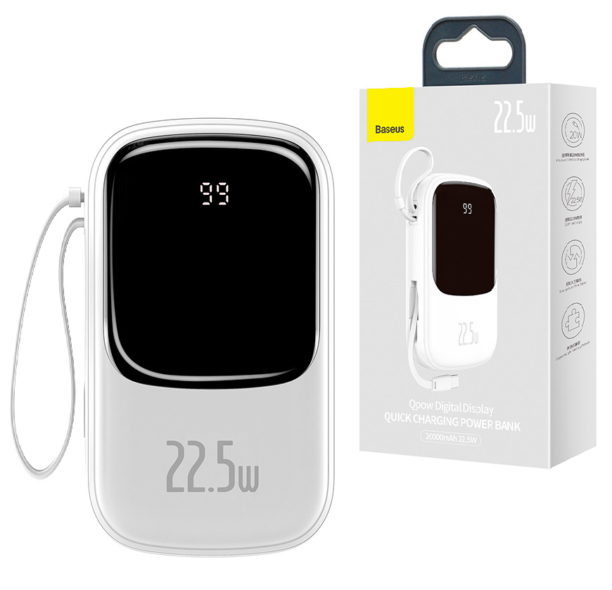Внешний аккумулятор Baseus Qpow2 Dual-Cable Digital Display Fast Charge Power Bank 20000mAh 22.5W